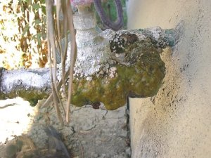 One of the biggest points of concern are photographs that show considerable corrosion on the outtake pipes several years after the lab moved from Kennedy Place to Drew Avenue. Is this residual pollution from the AgraQuest lab? Doug Haney believes so. As alarming was the fact that the dead crow in the picture above lay just beneath the pipe–undecomposed for two weeks between the time that the picture was taken and when Mr. Haney inspected the location.