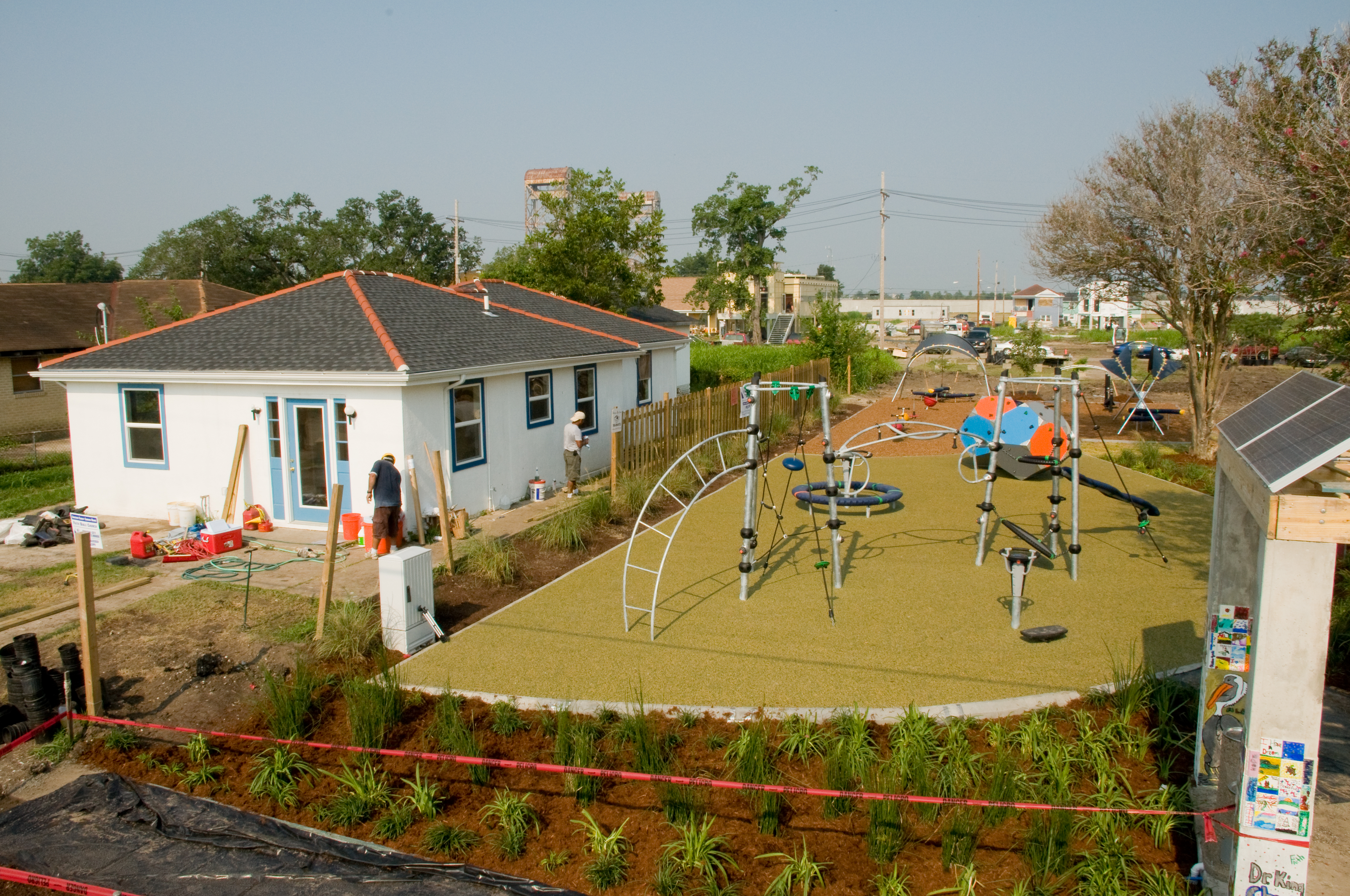 Continuing his efforts to turn the Lower Ninth Ward into an environmentally sustainable, largely solar-powered and “high-powered neighborhood,” Brad Pitt and Co. (through his Make it Right Foundation) today opened the most technologically advanced playground in North America.