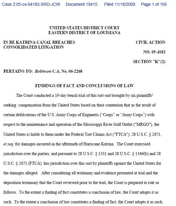 Thank you for blogging on this important issue. The ruling is a wake up call to the nation! Perhaps now more people will understand that levee failure and flooding in America is not a New Orleans problem, not a coastal problem, and not even a sea level problem.