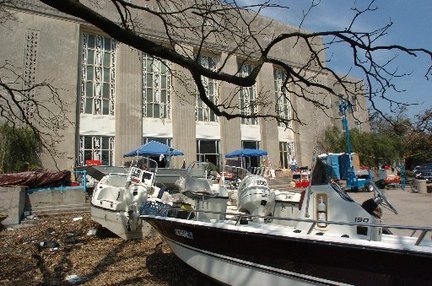 Chris Granger – Times-Picayune archive – Boats are beached around the St. Bernard Parish Courthouse after Hurricane Katrina in September 2005.