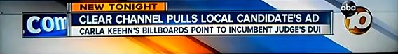 According to Channel 10 News on May 10th, Clear Channel informed Keehn that they, the nation’s largest billboard advertiser, received “pressure” to take the billboards down; and that Judge Schall was unable to be reached for 10 News interview to answer questions on the matter. (Are you seeing a pattern here when Schall has tough questions to answer?)