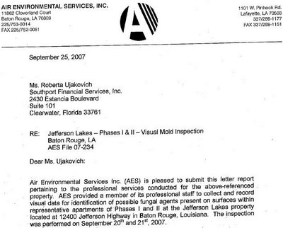 2007 Mold Inspection Report – Jefferson Lakes Apts – Riverstone Residential – Louisiana Housing Finance Agency