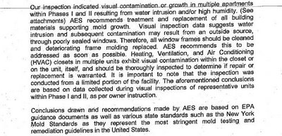 Again, as in the 49 units of the 76 inspected in Phase 1 & 2 that have mold in the HVAC system these do too. Also included are the recommendations of the visual inspection of apartments in phase 1 & 2 buildings that were posted earlier.