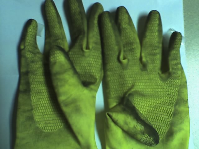 These are the gloves I used to pick up and pack things to move out of the toxic apartment at Jefferson Lakes. I was not picking up things that should have had a sticky black residue on them and I was not trying to rub any off – in fact I did not even want to touch anything with the gloves ON. But since I was inhaling it in large quantities anyway it does not really matter.